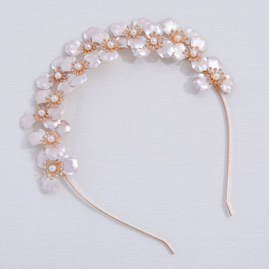 AZALIA - White Flower Petals and Stunning White Freshwater Pearl Headband